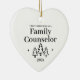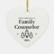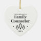Primeiro Natal como conselheiro de família, ornamento cardíaco para um novo emprego. Os ornamentos eletrizantes de porcelana, de férias, em branco, com letra preta. Apresentando árvores e estrelas de Natal.