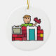 Ornamento De Cerâmica Construtor constrói a casa com blocos componentes