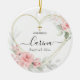 Coração Geométrica Blush Floral Cor-de-Rosa, Ornamento Cerâmico Batizado