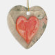 Enfeites de natal em forma de coração apresenta um coração vermelho de madeira, foto de um tecido de juta. Adicione um nome, data ou mensagem para personalizar o design.