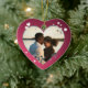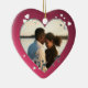 Para o casal feliz, adicione uma foto e personalize o texto no verso. Shimmery Hearts e ornamento de fotos de fita.