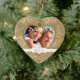 Sua fotografia está fechada dentro de uma antiga estrutura cardíaca de bronze, com uma faixa branca na parte inferior que mantém sua data especial neste adorno elegante. A parte de trás do ornamento tem seu texto personalizado em um campo de cor pálida, em forma de coração, enquadrado com o mesmo padrão cardíaco de bronze. Isto faz um Natal maravilhoso, um primeiro aniversário ou Dia de os namorados para qualquer casal.