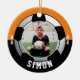Celebre os triunfos atléticos do seu filho na liga jovem, faculdade ou futebol segundo grau com este Ornamento de Cores da Equipe Negra Laranja. Personalize com a foto, o nome e o ano do seu filho. Uma ideia de presente de excelente para vovó e vovô.