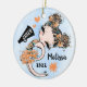 Enfeite de árvore de Natal bonitinho, Na moda e giro. Cores da equipe laranja. Apresentando uma cheerleader com design de cabelo castanho e um fundo azul-aquarela. Mais cores de equipe, assim como cabelo e cores de pele disponíveis no meu compro. Personalize com seu nome e ano. Dons de excelente e guardar para Cheerleaderes, Equipes de Animação e Treinadores.
