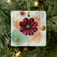 Adicione um toque de elegância e arte moderna às suas decorações de férias com este adorno cerâmico requintado. Apresentando uma flor vibrante de cosmos burguentos rodeada por padrões geométricos de ouro e salpicos de água macia em tons de chá e pêssego, esse ornamento é a perfeita mistura de beleza natural e design contemporâneo. Sua forma redonda e um acabamento cerâmico de alta qualidade fazem dele uma peça destacada para sua árvore, decoração doméstica, ou como um presente pensativo.
