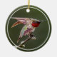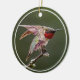 Um macho rubi gargantanoso se estica enquanto se senta no seu poço.