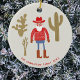 Ornamento De Cerâmica Cowboy Santa Claus Christmas Custom Text