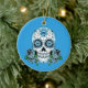 Crânio do açúcar de Diâmetro de los Muertos nas matiz do azul com flores e corações bonitos.