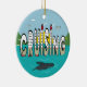A design de cruzeiro utiliza a palavra "cruzeiro" para criar um navio de cruzeiro que navega para destinos exóticos estrangeiros através dos mares azuis. Inclui sol, âncora, funis a vapor e portholes de cabine para criar um gráfico divertido para fãs de férias de cruzeiro.