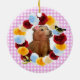 Este filhote de urso marrom e a mãe dela estão desfrutando do ar primavera. Uma borboleta decidiu juntar-se a eles. Um sol amarelo brilha neles. Este ornamento seria perfeito para os entusiastas da natureza! Personalize isso adicionando seu próprio texto!
