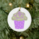 Ornamento De Cerâmica Cupcake de Bolinhas roxa