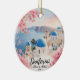 Celebrate a love that spans the globe with this elegant, double-sided ceramic ornament. Featuring a stunning hand-painted watercolor illustration of the iconic blue-domed churches of Santorini, this keepsake is the perfect way to commemorate a destination wedding, a romantic honeymoon, or a dream vacation.