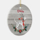O Rústico Ornament Cerâmico Dalmático de Natal, Antlers Greenery, será o ponto alto da sua árvore. Um Dalmacioso vestindo ornamentos em suas pretensas galhadas parece que ele está olhando para Papais noeis. Belo ambiente de Natal, sagrado, pinheiro e poinsettia em vermelhos de Natal e verdes decoram o fundo do ornamento. Tudo isso em um fundo de textura rústica de madeira de cinza. Mude o nome do cão para o seu filhote. A parte de trás do ornamento tem uma coroa de verde igual em uma textura de papel kraft de cinza e tem o ditado "Happy Howlidays e também "Anderson Humans" e o ano para editar e fazer dele seu próprio. Este texto, assim como todo o texto deste ornamento, é editável com a ferramenta personalizar. Torne seu Dalmaciano orgulhoso e faça com que vários deles se espalhem pela sua árvore. Este ornamento, assim como guardanapos e placas de papel correspondentes para as suas festas de férias estão na nossa COLEÇÃO "HELY HOWLIDAYS DOG" em nossa loja.