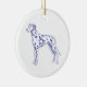 Klassisches Design in Blau-Weiß. Blaue Linienzeichnung eines Dalmatiners auf weißem Untergrund.