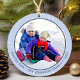Celebre a temporada de festas com este Enfeites de natal personalizável que apresenta uma ilustração esbranquiçada de uma criança andando de um trenó num dia de inverno de neve, emparelhada com uma elegante tipografia escrita que lê, "Dashing Through the Snow." Modifique esta design, adicionando seu próprio texto na frente e atrás, e então carregue uma foto favorita para criar uma manutenção única que é perfeita para dar a família ou amigos.