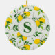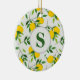 Este ornamento de cerâmica minimalista de limão e folhas apresenta um padrão de limão divertido com elementos vibrantes amarelos, limão e verdes. A letra da monograma é lindamente exibida dentro de um círculo central. Um presente perfeito para chá de panela para quem ama decorações frescas e cítricas.