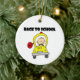 De volta às T-shirts da escola, canecas, sacos de tote, botões e outros itens com um grande ônibus amarelo com um motorista de bonequinha e texto que diz "Voltar à escola" sobre t-shirts, canecas, botões, mousepads e muito mais!