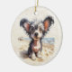 Ornamento De Cerâmica DigiPups Chineses Crested Puppy Dog Beach Ccene