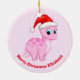 Ornamento De Cerâmica Dinossauro Bebê Rosa Bonito com Santa Hat