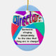 Que é a definição de um diretor? Quando alguns de meus amigos do diretor vêem este design, dizem sempre, "não é que a verdade!" Este ornamento oval faz um presente perfeito para qualquer tipo de diretor, se trabalham no teatro, no palco, nos filmes, ou como as cabeças de qualquer organização!