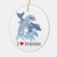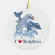 Um belo pod da família de golfinhos para uma natação. Azul suave em tons azuis e eu coração texto de golfinhos.