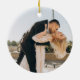 Celebre o seu primeiro Natal como recém-casados e marque a ocasião com este enfeites de natal de fotos de casamento de keepape. Apresentando uma coroa botânica com folhagem falsa de ouro, um modelo que é fácil de personalizar e uma foto favorita do dia do seu casamento.