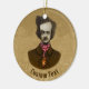 Edgar Allan Poe, aterrorizado, a ver um inseto de ouro a subir na gravata. Desenho colorido da caneta de tinta. Texto personalizado.