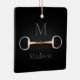 Para equestrianos e amantes de cavalos, este ornamento apresenta uma ilustração trompe l'oeil de um pedaço de bico de cobre entre seu monograma e nome.