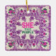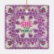 Ornamento feminista elegante do AF para decorar seu árvore ou presente seu grupo da menina. O patina e as imperfeições do vintage são parte do encanto nesta cruz retro de lenço da tapeçaria costurada com "ela as pessoas" para mostrar a solidariedade com a irmandade na luta contra leis misogynistic.