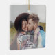 Celebre uma alegre proposta de Natal e noivado com um ornamento cerâmico personalizado de 2 quadras fotográficas. Imagens e todo texto neste modelo são simples de personalizar, incluindo o texto que diz "Ele fez a pergunta ... ela disse sim!" (DICA IMAGEM: Uma maneira fácil de centralizar uma foto exatamente como você quer é recortá-la antes de carregá-la no site do Zazzle.) O design apresenta uma camada moderna de tipografia branca e preta, caligrafia de script de tendência, nomes de casais, data engajada e duas fotos de sua escolha. Esta única lembrança de casamento faz uma ideia de presente noiva noiva de na moda no primeiro Natal e adiciona um toque elegante às decorações das casas de Natal.