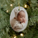 Celebrate your baby's first Christmas with this elegant and timeless photo ornament, featuring the text "Baby's First Christmas" where you can add a custom name. With it's classic design this keepsake will hold cherished memories for years to come. Perfect as a gift for new parents or to add a special touch to your own tree, this ornament is a beautiful way to commemorate this precious milestone.