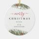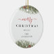 Este ornamento cerâmico simples e elegante apresenta uma bela aquarela ilustrativa de um ramo de pínus e inscrições modernas com seu nome personalizável