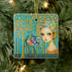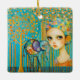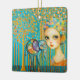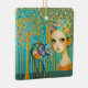 Um elefante estilizado e colorido fica ao lado de uma garota com olhos grandes e um chapéu branco, padronizado. Árvores pontilhadas e faixas verticais vibrantes enchem o fundo com um senso de fantasia e maravilha. Digital Art Photoshop CS5