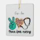 A placa de paz mão, coração e estetoscópio com o texto "Enfermeiro de Amor pela Paz" cria o Enfeites de natal perfeito para a sua enfermeira favorita! Personalize com nome ou monograma no topo.