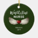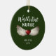 Enfermeira Angel Wings Heart Keepsasaame Nome Ornament Cerâmico de Natal Ambas as faces do ornamento desenhado com "A Melhor Enfermeira do Mundo" em letras de escrita de caligrafia branca e asas de anjo branco estendidas do coração vermelho no centro do fundo verde esmeralda escuro. Você pode mudar o ornamento para sua cor favorita. Personalizado com o nome da enfermeira na área inferior e no ano personalizado. Faz uma enfermeira excelente ter uma ideia de presente. CLIQUE EM PERSONALIZAR OPÇÃO MODELO E DIGITE NOME E ANO