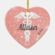 Enfermeira Bonita Doutor Personalizado pelo Ornamento Cerâmico de Natal Cardíaco faz uma ideia excelente de presente de Natal para alguém no campo médico. Ambos os lados do ornamento em forma de coração são projetados com o fundo cor-de-rosa esbranquiçado tendencioso e a camada cintilante fraca. Um símbolo médico caduceus branco está no centro com o nome personalizado sobreposto em letra de escrita de caligrafia de cinza. O ano personalizado está na área inferior do ornamento. CLIQUE EM PERSONALIZAR OPÇÃO MODELO E DIGITE NOME E ANO.