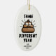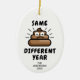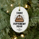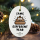 Enfeites de natal pandêmico personalizado de 2021 com um simples fundo branco que pode ser mudado para qualquer cor, um gráfico vetorial de cocô, as palavras "mesma porcaria diferente ano", seu nome familiar e o ano.