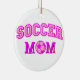 Bola de futebol desenhada à mão e texto. ornamentos cerâmicos personalizados com designs únicos. Design de cor rosa. Ideia para mães de futebol.