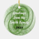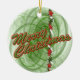 Os redemoinhos verdes, as fitas e as estrelas do fractal terminam um lado de um design vermelho e verde festivo tradicional do Natal neste ornamento redondo. Este design tem o texto verde esboçado vermelho do "Feliz Natal" em um lado e você pode personalizar o lado oposto. Preencha os blocos do modelo com suas palavras para personalizar esse lado ou para remover completamente o texto. O clique "personaliza-o!" para selecionar um estilo de pia batismal, a cor e fazê-lo sob medida prefere.