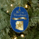 Dê-lhes algo bonito do estado excelente da Arizona! Na frente desse ornamento está uma silhueta de ouro brilhante do estado, com uma estrela de ouro mais escura imposta sobre ele. Acima do estado e da imagem de estrela está a mensagem de brilho MERRY CHRISTMAS no script e um banner com o texto na ARIZONA azul. À sua volta estão todos os flocos de neve dourados. As imagens e o texto são colocados sobre um fundo azul profundo. A parte de trás do ornamento tem campos de texto em dourado claro para você personalizar, e uma segunda imagem de estrela dourada. Você pode mudar a cor de fundo, se quiser, escolhendo PERSONALIZAR.