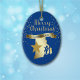 Dê-lhes algo bonito do estado excelente de Rhode Island! Na frente desse ornamento está uma silhueta de ouro brilhante do estado, com uma estrela de ouro mais escura imposta sobre ele. Acima do estado e da imagem de estrela está a mensagem de brilho MERRY CHRISTMAS no script, e um banner com o texto em azul RHODE ISLAND. À sua volta estão todos os flocos de neve dourados. As imagens e o texto são colocados sobre um fundo azul profundo. A parte de trás do ornamento tem campos de texto em dourado claro para você personalizar, e uma segunda imagem de estrela dourada. Você pode mudar a cor de fundo, se quiser, escolhendo PERSONALIZAR.