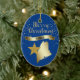 Dê-lhes algo bonito do estado excelente do Maine! Na frente desse ornamento está uma silhueta de ouro brilhante do estado, com uma estrela de ouro mais escura imposta sobre ele. Acima do estado e da imagem de estrela está a mensagem de brilho MERRY CHRISTMAS no script, e um banner com o texto em azul MAINE. À sua volta estão todos os flocos de neve dourados. As imagens e o texto são colocados sobre um fundo azul profundo. A parte de trás do ornamento tem campos de texto em dourado claro para você personalizar, e uma segunda imagem de estrela dourada. Você pode mudar a cor de fundo, se quiser, escolhendo PERSONALIZAR.
