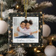 Um adorável ornamento fotográfico de dupla face exibindo uma foto favorita em cada lado, em uma aquarela preta pontilhada com estrelas ouros. Personalize com uma legenda personalizada na frente em letra manuscrita e adicione o ano no verso.