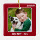Este Enfeites de natal personalizado de 2 fotos 2, lado vermelho personalizado, para crianças apresenta duas fotos de seu filho ou adolescente e dois eventos especiais ou marcos que ocorreram durante o ano. Pode ser uma nova viagem de filhote, de pesca com pai, graduação, jogo de campeonato do Estado, prêmio especial, viagem de caça, carteira de motorista ou qualquer outro evento de que seu filho ou adolescente tenha orgulho durante o ano. Seus filhos amarão sua própria manutenção com seus marcos especiais! A cor de fundo é personalizável.