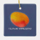 Esta manga deliciosa parece tão deliciosa que você pode quase sentir seus sabores de verão! O amarelo e o vermelho da fruta madura fresca do mercado local fazem uma bonito cena descansando sobre um guardanapo azul, lembrando-nos de comer mais frutas frescas.