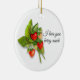 Este ornamento tem uma vinheta realista de uma planta de morango. As amoras maduras e maduras destacam-se realmente contra as folhas verdes sombreadas realistas. Você pode mudar o texto na frente e atrás. Na frente diz "Eu te amo muito" no verso que diz "Amor para sempre, de (nome)" Você também pode mudar a cor de fundo. Outros itens com estas amoras bonito estão na seção de colheita da minha loja.