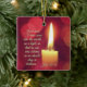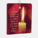 Belo Enfeites de natal personalizado retrata uma vela brilhante e apresenta a Bíblia Verse John 12:46, " Eu entrei no mundo como uma luz, para que ninguém que acredita em mim fique na escuridão." A bênção posterior pode ser personalizada para os detalhes de sua escolha.~
