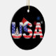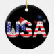 "EUA" nas Estrelas e Stripes com ícones e cristais, uma árvore de Natal e um chapéu de Papai Noel em "EUA", e flocos de neve em vermelho, branco e azul no fundo. Design exclusivo dos EUA para as estações de férias.