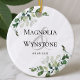 Esta bela design com a sua aquarela eucalipto verde pode ser personalizada com os nomes e a data do casal de casamento.