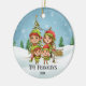 Ornamento De Cerâmica Família Elf de 4 Filhas da Mãe do Pai